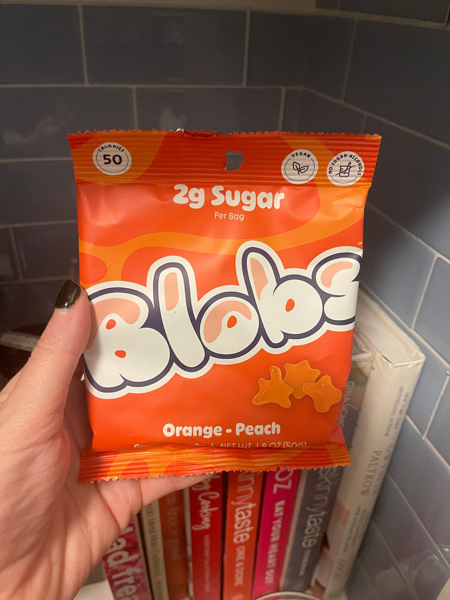 , they’re the perfect touch of sour, feature fun flavors like pomegranate and calamansi, and are only 60 calories per bag. Plus, no icky artificial aftertaste!!! Just as good as Sour Patch Kids…truly.But I’ve found a match for Better Sour. A genius friend (more below) recommended Blobs, and I devoured my first bag. They’re DELICIOUS, and equally good as Better Sour (minus the sour part!)